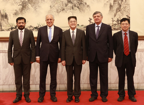 2019年7月11日,外交部副部长乐玉成在钓鱼台国宾馆会见来华参加阿富汗问题第三次中俄美三方磋商和首次中俄美巴(基斯坦)四方会议的代表,就当前阿和谈和解形势、如何推动阿问题政治解决等交换意见。