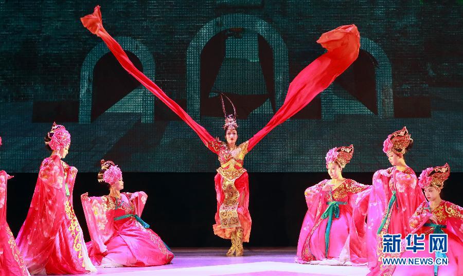 7月13日,在白俄罗斯维捷布斯克,演员在杂技剧《丝路彩虹》中表演舞蹈。 新华社发(任科夫摄)
