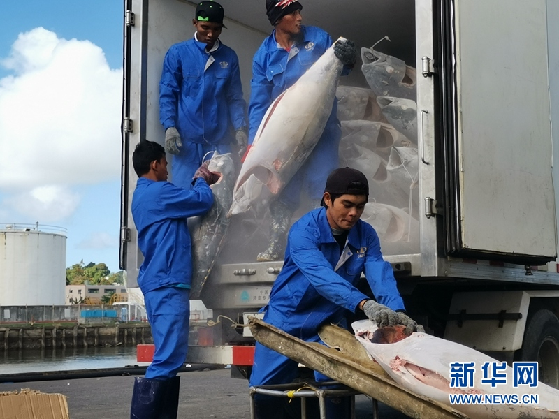 在苏瓦渔业码头,工人们正在搬运金枪鱼。张永兴 摄