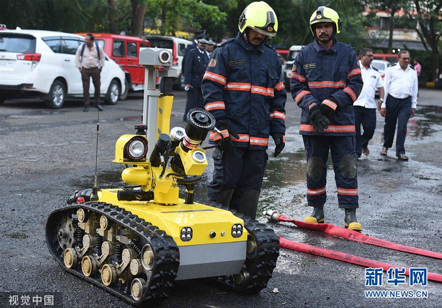 当地时间7月17日,印度孟买,当地为Borivali消防站新投入使用的消防机器人揭幕。(图片来源:视觉中国)