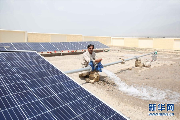 7月21日,在巴基斯坦俾路支省首府奎达市,一名工作人员在中国援建的供水站开闸放水。新华社记者 刘天 摄