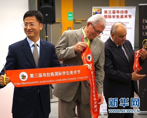 中国驻捷克大使张建敏与其他嘉宾共同为美术节剪彩。马丁·马赫 摄