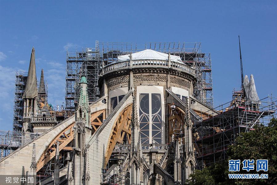 当地时间7月24日,法国巴黎,大火后巴黎圣母院的修复工作持续进行。(图片来源:视觉中国)