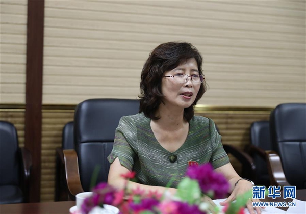 7月24日,朝鲜国家观光总局观光宣传局局长金春姬在平壤接受新华社记者采访。新华社记者 程大雨 摄