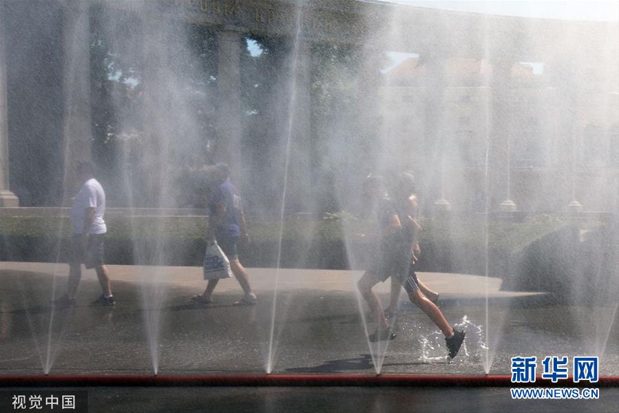 当地时间7月25日,奥地利维也纳,当地炎热天气持续,街头广场设置水幕为市民降温。 (图片来源:视觉中国)