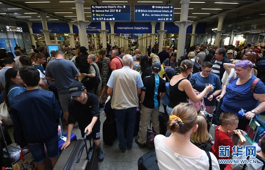 当地时间7月26日,英国伦敦,乘客在英国伦敦圣潘克拉斯火车站等待从伦敦到巴黎的“欧洲之星”列车。“欧洲之星”列车因接触网故障而停止运行,大批旅客滞留车站。据报道,此次故障与席卷欧洲的热浪有关。(图片来源:东方IC)