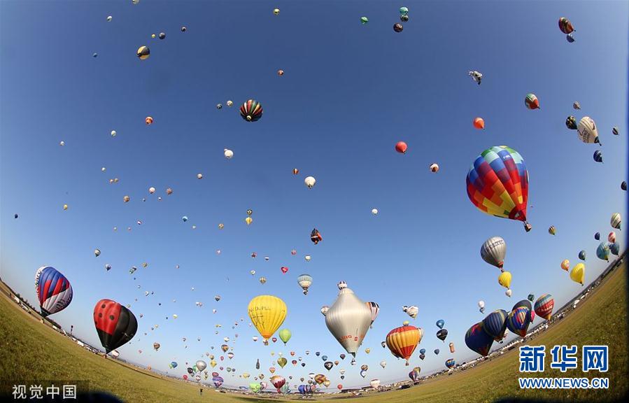 当地时间7月29日,法国尚贝莱,法国热气球节持续举行,天空飞满五彩斑斓的热气球。(图片来源:视觉中国)