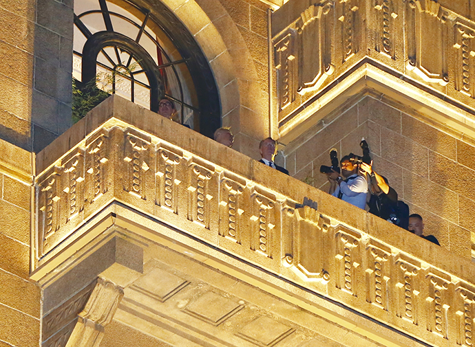 7月30日,刘鹤副总理与美国贸易代表莱特希泽、财政部长姆努钦登上了和平饭店九楼的露台共览浦江。