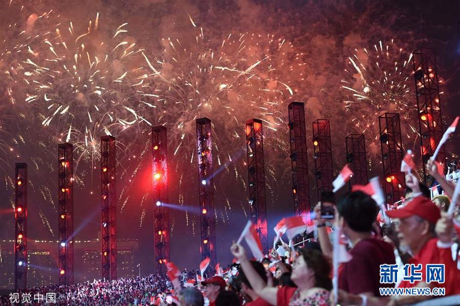 当地时间8月9日,新加坡,新加坡举行国庆54周年庆典。新加坡于1965年8月脱离马来西亚,成立新加坡共和国。(图片来源:视觉中国)