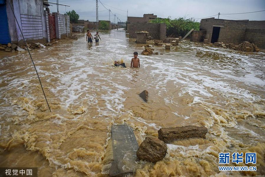 当地时间2019年8月11日,巴基斯坦卡拉奇,暴雨导致当地遭洪水侵袭。巴基斯坦国家灾害管理局副局长萨基卜·蒙塔兹11日说,从今年7月开始的暴雨已在巴全国范围内造成161人死亡,另有137人受伤。(图片来源:视觉中国)