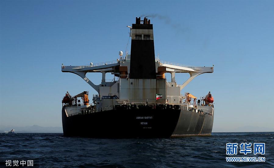 当地时间8月18日,直布罗陀,获释的伊朗油轮“格蕾丝一号”被重新命名为“阿德里安·达里亚一号”并悬挂伊朗国旗,目前已经重新出发。英国海外领地直布罗陀当局15日决定释放装载伊朗原油的油轮“格蕾丝一号”。(图片来源:视觉中国)