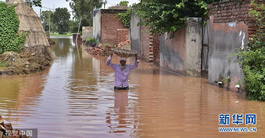 当地时间8月19日,印度旁遮普邦卢迪亚纳,当地遭洪水侵袭。(图片来源:视觉中国)