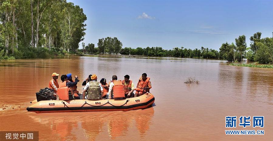 当地时间8月19日,印度旁遮普邦卢迪亚纳,当地遭洪水侵袭。(图片来源:视觉中国)