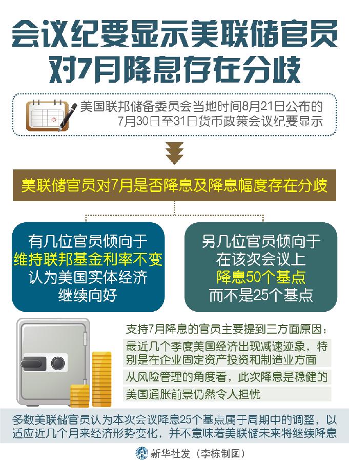 新华社华盛顿8月21日电(记者 高攀 杨承霖)美国联邦储备委员会21日公布的7月货币政策会议纪要显示,美联储官员对7月是否降息及降息幅度存在分歧。