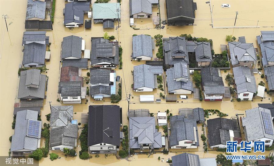 当地时间8月28日,日本佐贺县,当地洪水泛滥。当日日本福冈、佐贺、长崎等地遭遇暴雨袭击引发洪水。(图片来源:视觉中国)
