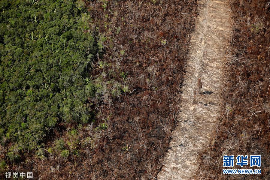 巴西亚马孙雨林大火持续 航拍被烧毁的雨林林地