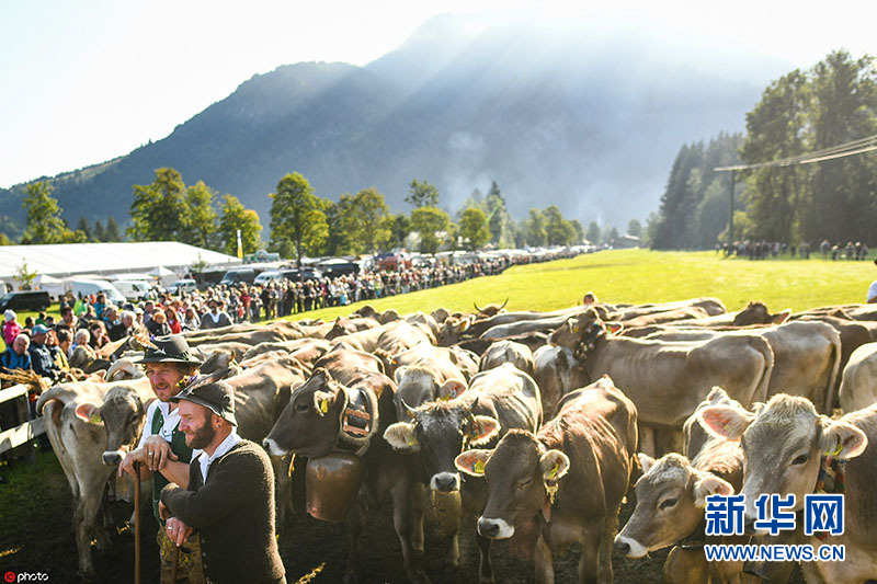 德国举办“赶牛下山”活动 牧民着传统服饰驱赶牛群回家