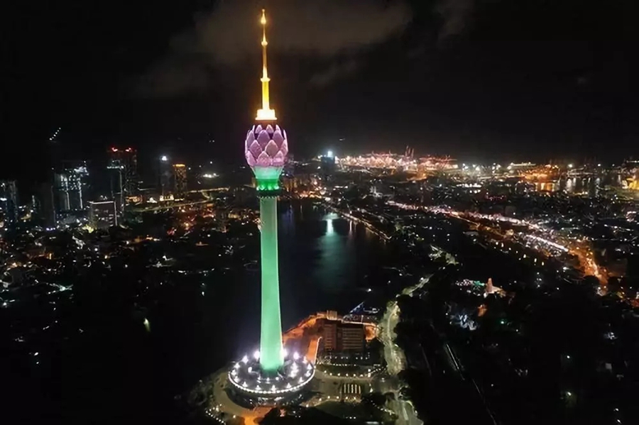 斯里兰卡首都科伦坡地标建筑莲花电视塔9月16日晚举行竣工庆典。科伦坡莲花电视塔是中斯两国在“一带一路”建设中的重要合作项目。新华社发