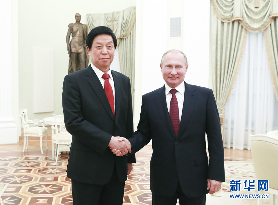 会见普京时,栗战书首先转达了习近平主席的亲切问候。栗战书说,在习近平主席和总统先生的战略引领和推动下,中俄关系达到前所未有的高度,迈入更高水平、更大发展的新时代。在当前国际形势下,中俄应更加坚定相互支持,共筑两国战略依托和安全屏障,推动构建新型国际关系和人类命运共同体。要在两国元首的战略引领下,把政治互信和战略协作推向新高度,把经贸合作推向新水平,推动中俄新时代全面战略协作伙伴关系不断向前发展。普京请栗战书转达对习近平主席的良好祝愿。他说,俄中关系是当今世界大国关系的典范。俄中新时代全面战略协作伙伴关系建立在遵守国际法基础上,符合两国及两国人民利益。当前两国各领域合作都向着既定目标稳步推进。要在现有基础上,深化全面合作,把两国关系发展得更好。