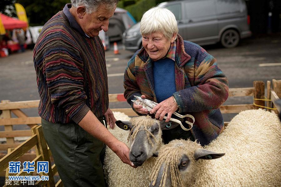 英国年度马沙姆羊市开幕 绵羊“编小辫”参加