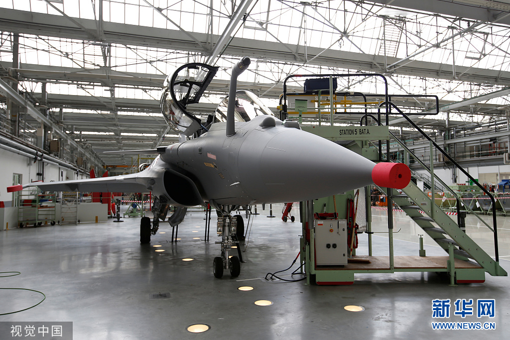 当地时间10月8日,法国梅里尼亚克,印度空军订购的首架“阵风”战机日前在法国达索公司下线。(图片来源:视觉中国)