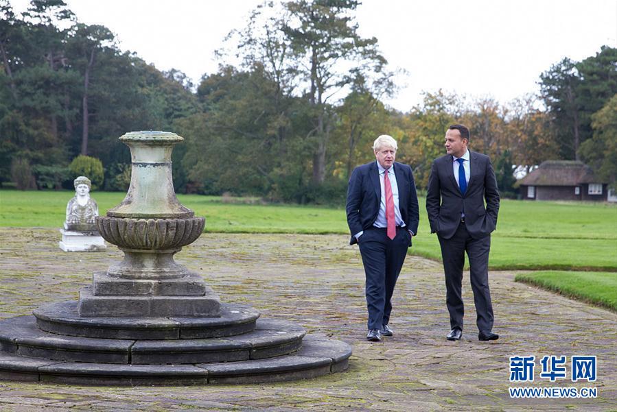 当地时间10月10日,英国切斯特,英国首相约翰逊会晤爱尔兰总理瓦拉德卡,为挽救英国关于“脱欧”协议的一项建议案作出最后努力。(图片来源:视觉中国)