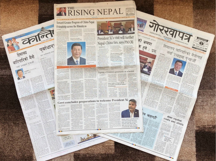 10月11日,尼泊尔3份报纸头版刊登习近平主席的署名文章,题为《将跨越喜马拉雅的友谊推向新高度》。新华社记者王婧嫱摄