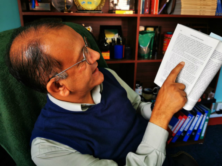 尤巴拉杰告诉记者,他拜读过《习近平谈治国理政》4遍,深感中国发展经验和治国理政经验对尼泊尔当今发展非常有借鉴意义。他向不少当地官员推荐了这本书,建议他们读两遍以上。他还在个人著作中高度评价中国“一带一路”倡议。新华社记者毛鹏飞摄