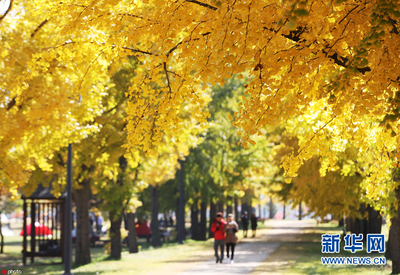 韩国京畿道银杏迎最佳观赏期 市民感受浓浓秋意
