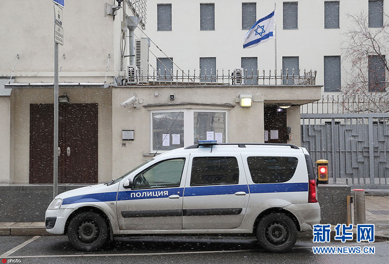 当地时间10月30日,俄罗斯莫斯科,以色列驻莫斯科大使馆。据报道,以色列外交部30日通过其官方推特账户发布声明说,由于与以色列财政部就津贴问题发生纠纷,以色列外交部从当天开始无限期关闭所有驻外使领馆。(图片来源:东方IC)