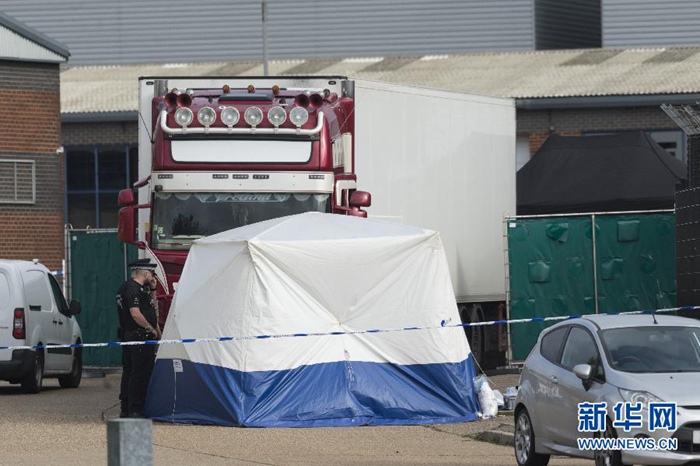 英国警方10月23日在英格兰东南部埃塞克斯郡一工业园区内的一辆集装箱货车里发现39具遗体。警方说,这辆货车在保加利亚注册,19日经由威尔士海港城市霍利黑德入境英国,集装箱则来自比利时。越南公安部部长苏林10月30日说,越南公安部已准备好派出工作组前往英国,与英国警方协作核实货车惨案遇难者身份。