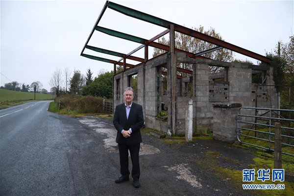 10月31日,今年63岁的爱尔兰新芬党议员帕特·特雷纳站在爱尔兰和英国北爱尔兰交界处一个被废弃的海关检查站前。新华社发