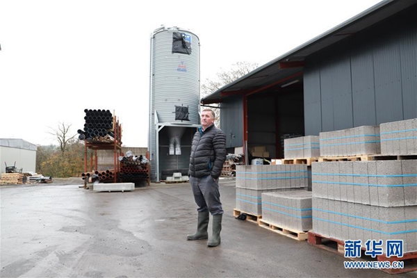 10月31日,在爱尔兰北部边境小镇克朗斯,埃蒙·菲茨帕特里克站在他新建的金属饲料罐前。他经营了20年的汽修店位于爱尔兰北部,刚好被边界线一分为二:一边是出售各种零件和工具的五金商店,在英国境内;另一边则是可供加油的区域,在爱尔兰境内。新华社发
