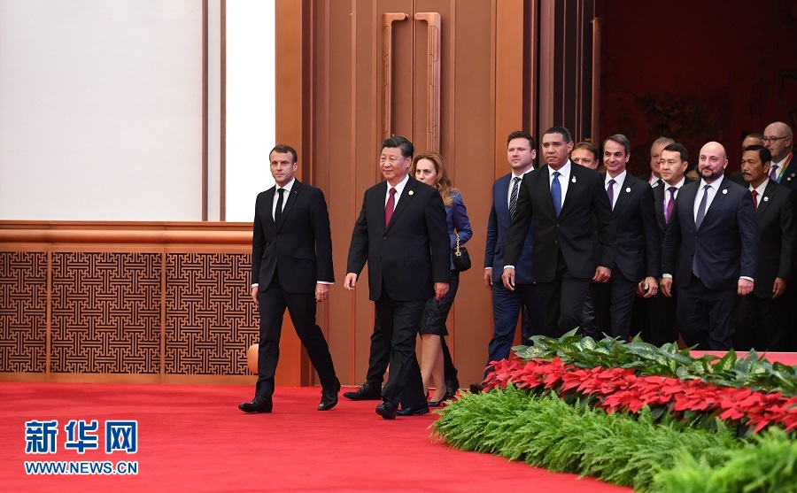 上午9时30分许,习近平同外方领导人一同步入会场。