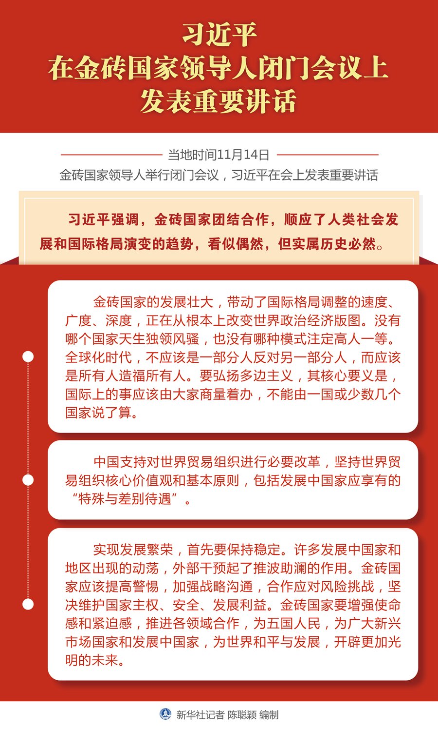 图表:习近平在金砖国家领导人闭门会议上发表重要讲话 新华社记者 陈聪颖 编制
