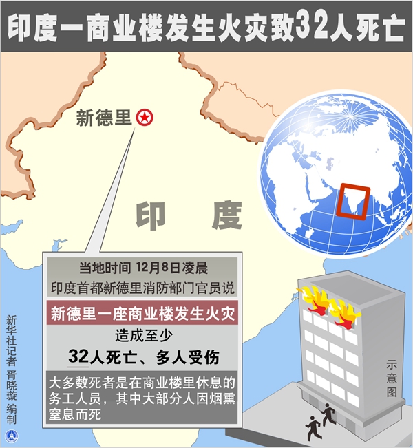 新华社新德里12月8日电(记者胡晓明)印度首都新德里消防部门官员8日说,新德里一座商业楼当天凌晨发生火灾,造成至少32人死亡、多人受伤。