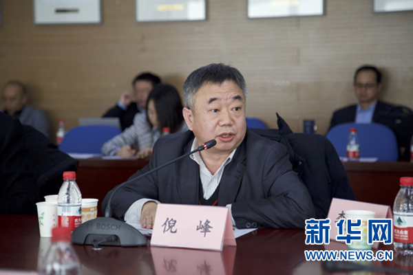 12月10日,中国社科院美国研究所所长、研究员倪峰在研讨会上发言。新华网 陈颖摄