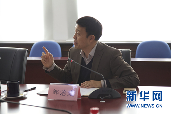12月10日,中国社科院世界经济与政治研究所副所长、研究员邹治波在研讨会上发言。新华网 陈颖摄