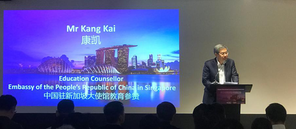 图为中国驻新加坡大使馆教育参赞康凯致辞。(图片由活动主办方提供)