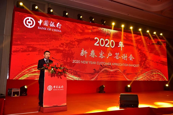 1月15日,中国银行科伦坡分行行长王川在2020年新春客户答谢会上致辞。(图片由主办方提供)