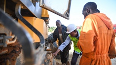 1月20日,在尼日利亚拉各斯,消防人员在输油管道爆炸现场工作。 新华社发(艾玛·伊曼纽尔摄)