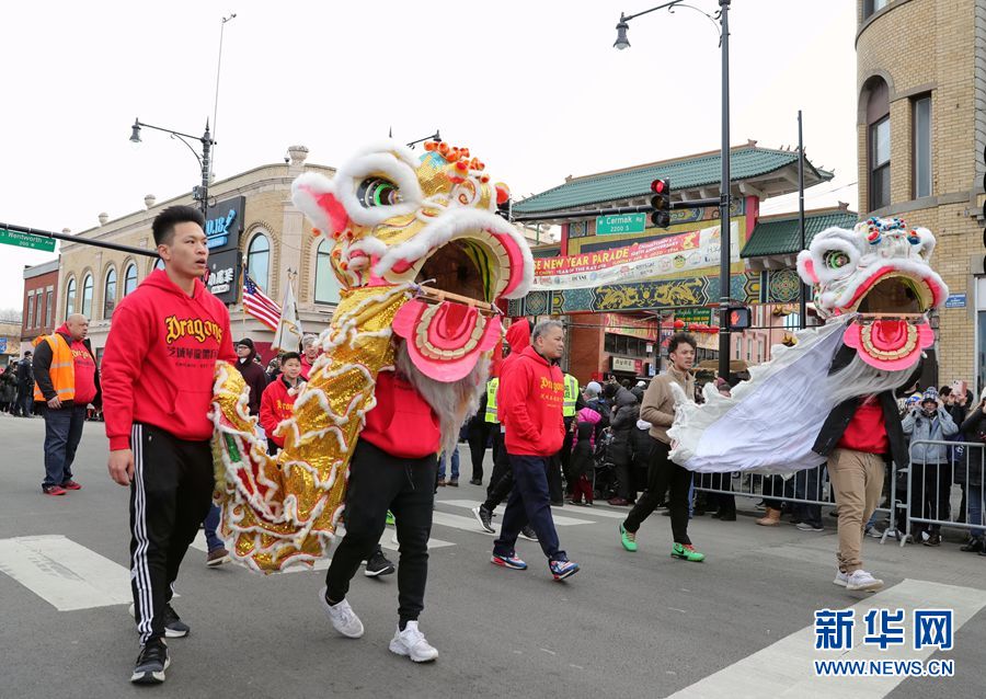 美国芝加哥唐人街举行春节游行活动