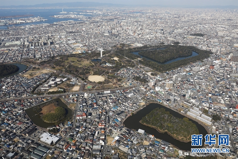 这是2月4日在直升机上航拍的日本大阪“百舌鸟和古市古坟群:古日本墓葬群”一角。“百舌鸟和古市古坟群:古日本墓葬群”位于日本大阪府,于2019年被列入世界遗产名录,包括40多处“古坟”。“古坟”是大小不一的坟冢,反映了日本古坟时代(公元3-6世纪)的文化,有锁孔(前方后圆)形、扇贝形、方形、圆形等多种外形,其中大型的锁孔形“古坟”最具特色。墓主均为贵族阶层,墓内有各种随葬品,顶部和四周用粘土塑成的“埴轮”装饰。该“古坟”群被列入世界遗产后,当地政府和企业也借此开发旅游观光资源,希望吸引更多游客前来观光。记者 杜潇逸 摄