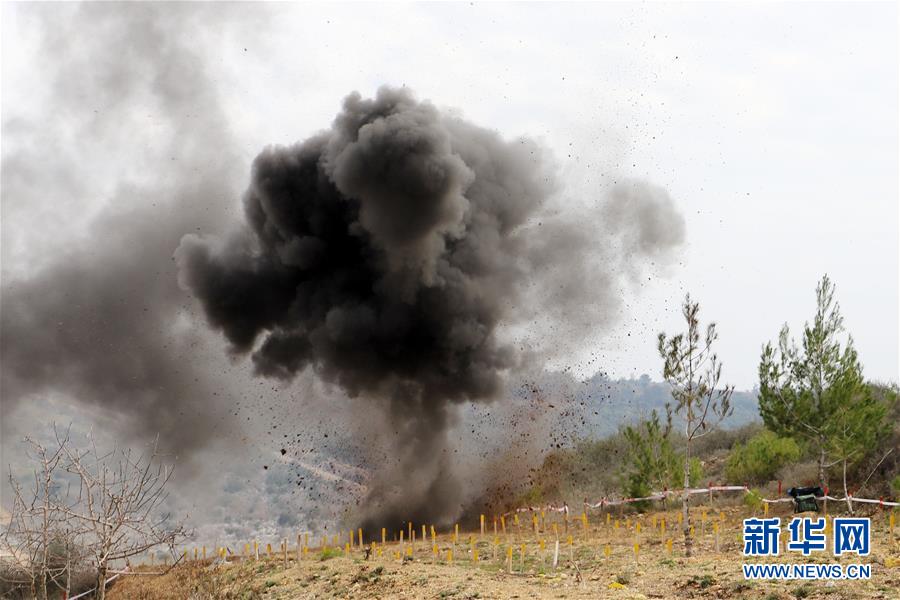 1月17日,在位于黎巴嫩南部与以色列边境“蓝线”附近雷场,中国扫雷官兵引爆销毁最后两个作业通道清排出的地雷。新华社发(孙帅摄)