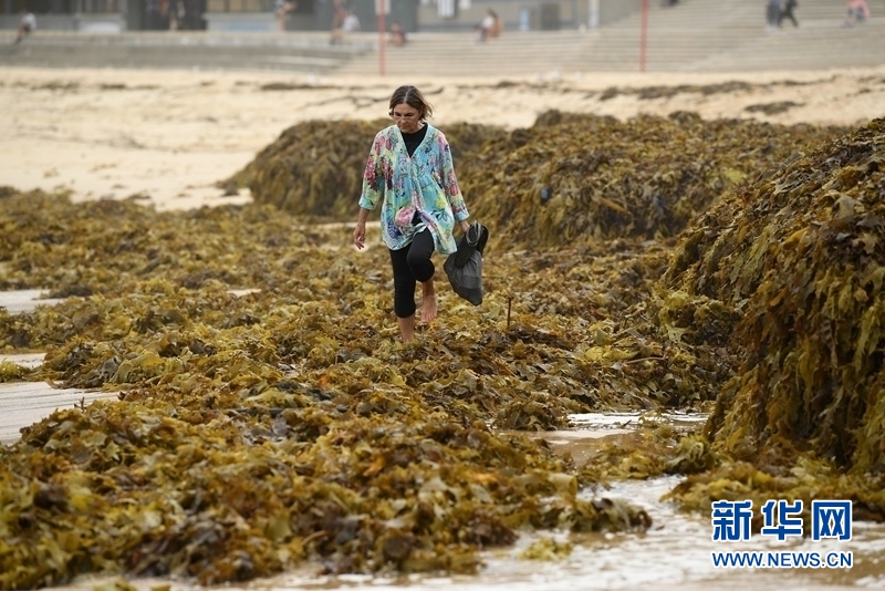 澳大利亚悉尼:大量海藻被冲到海滩 堆积如山