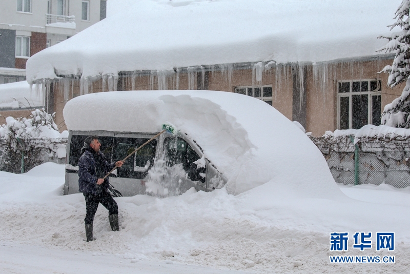 土耳其凡城大雪纷飞 积雪深度超1米