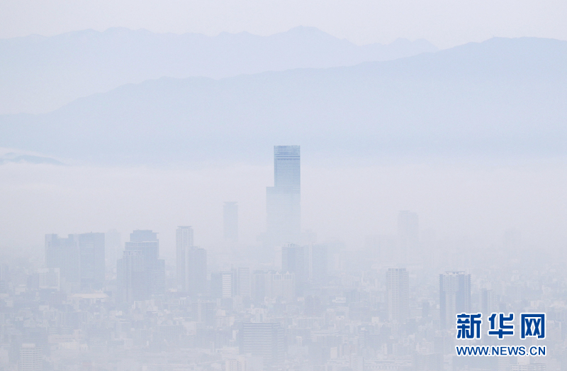 日本大阪浓雾缭绕 第一高楼若隐若现