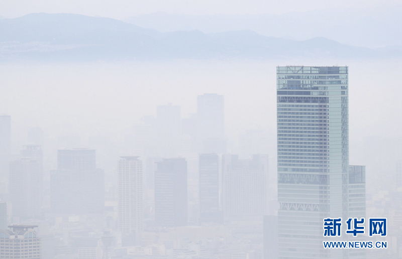 日本大阪浓雾缭绕 第一高楼若隐若现