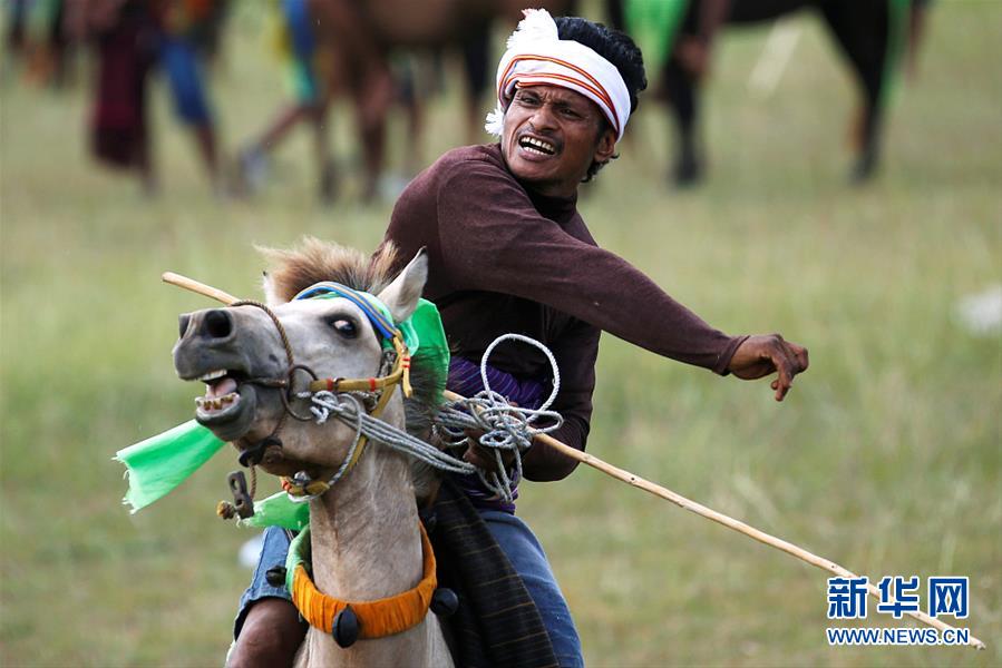 当地时间2月20日,印度尼西亚东努沙登加拉省松巴岛,当地民众参加帕索拉节庆祝活动。这是一项每年举行的古老仪式,数百名骑手通过手持木制长矛互相投掷的方式战斗,祈求在新的一年里农作物获得丰收。 (图片来源:视觉中国)