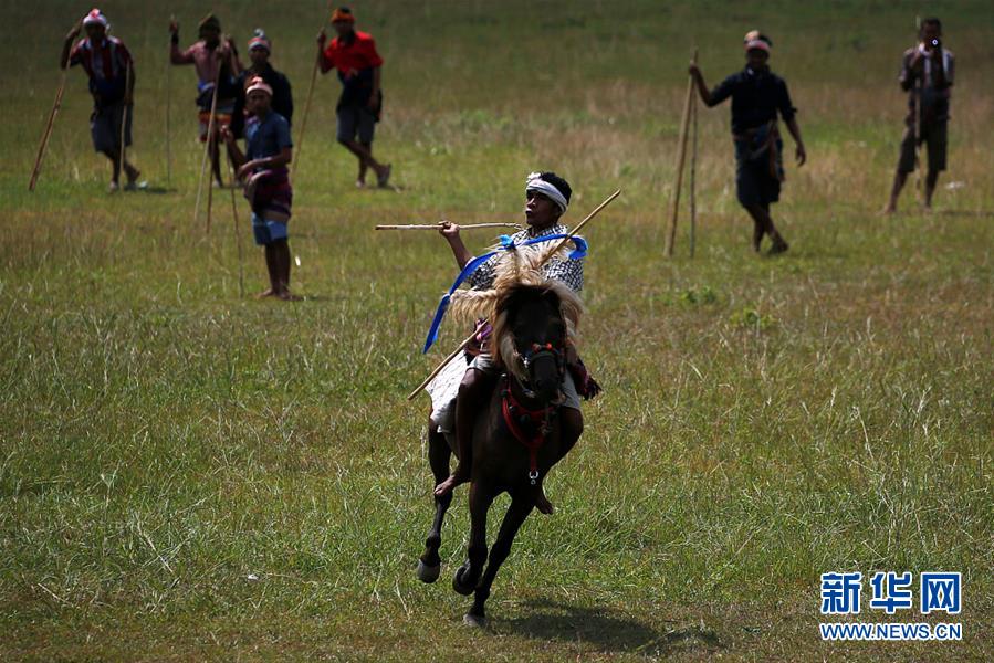 当地时间2月20日,印度尼西亚东努沙登加拉省松巴岛,当地民众参加帕索拉节庆祝活动。这是一项每年举行的古老仪式,数百名骑手通过手持木制长矛互相投掷的方式战斗,祈求在新的一年里农作物获得丰收。 (图片来源:视觉中国)